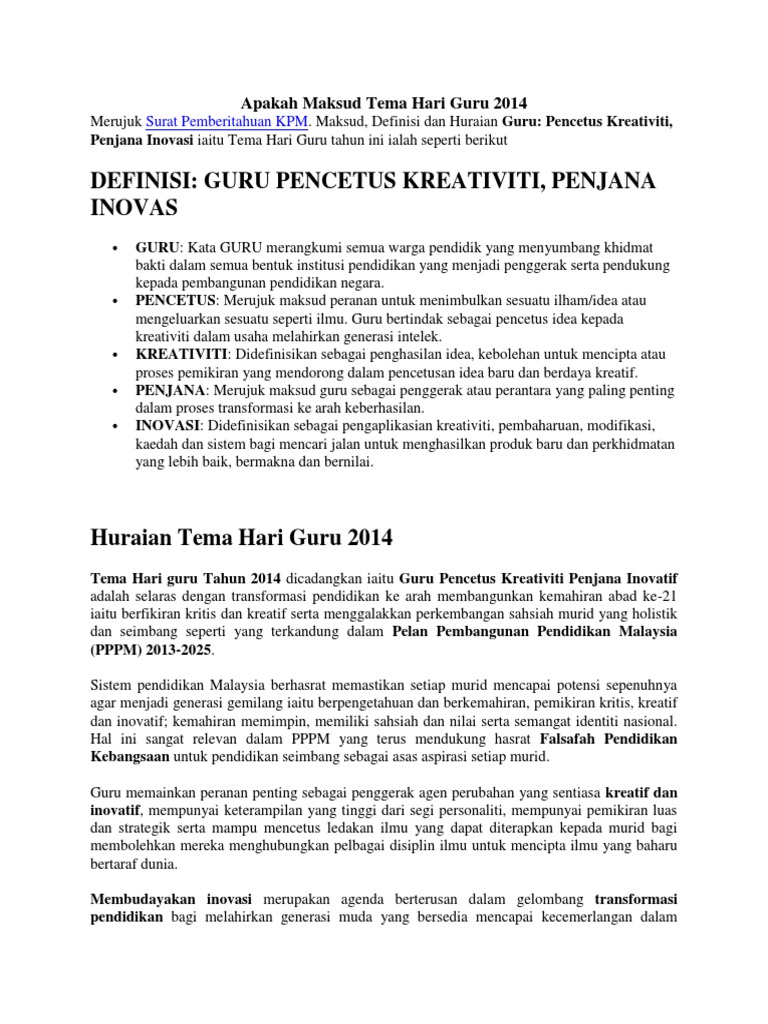 Apakah Maksud Tema Hari Guru 2014 Pdf